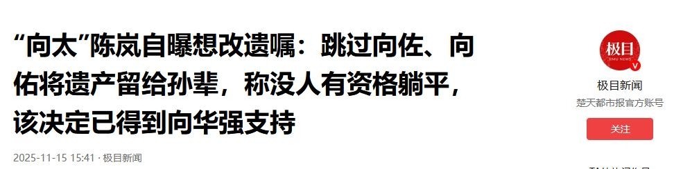 这种跳过子女、直传孙辈的财产安排实属罕见,若消息属实,向佐与向佑的心理防线恐怕难以承受。